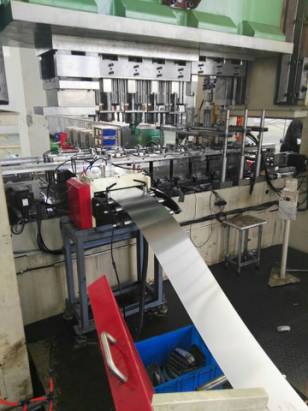 目前国内企业新能源动力电池铝壳冲压成形方法是使用一般冲床及油压机,将铝钣冲裁下料后经多道拉伸(通常需 7~8 道),并回火去除应力。一般使用延展性好、利于深拉工艺的AL3003,使用的设备有冲床、超声波清洗槽、甩干机。